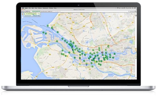 eNoses and the Comon Websuite provide complete insights in the rise and spread of gas emissions. This infographic shows the architecture of the real-time air monitoring process.