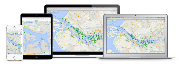 The Websuite dashboard is a web-based user interface that displays both the actual and historical status of eNoses in the eNose network. Each eNose is displayed by means of a coloured dot on a GIS map. The colour of the dot gives an indication of the air composition detected by the eNose. The colours range from Green-Yellow-Orange-Red.